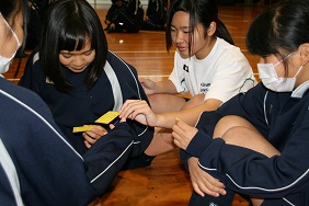 講演会の様子4 ロールプレイング中 謝辞(代表:保健委員長)