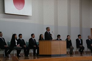 引き続き教務主任からは、「結果にたして後から言い訳をせずに済むように勉強をすること。」、進路指導主事からは、「現実を理想に近づける為には人並み以上の努力が必要であること。」、生徒指導部長からは、「挨拶や礼儀や誠実な気持ちを持つことが大切である。」と話がありました。
