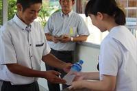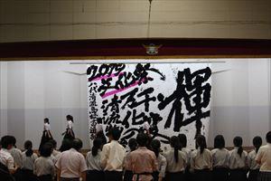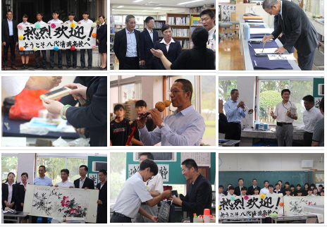 8月23日(金)、北海市図書館交流団の方々が5名八代清流高校に来校されました。図書館を視察され、いくつか質問をされていました。その後、書道室に移動し、書道部の練習風景を見学されたり、一緒に書道をして楽しまれました。また、生徒へ中国の歴史についての説明をしていただきました。団長さんが「北国の春」をトランペット演奏されました。それにあわせて鬼塚教頭が歌をうたわれ、なごやかな雰囲気になりました。最後にみんなで記念撮影を行い、とても良い交流の機会になりました。