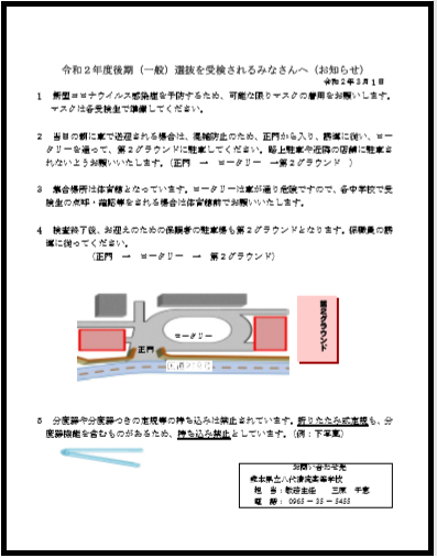 令和2年度後期(一般)選抜を受検されるみなさんへ(お知らせ)
