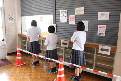 再開にあたっては、生徒の皆さんの健康状態を御家庭でも確認いただき、発熱等の風邪症状がみられるときは、無理をせず、自宅で休養するようにしてください。学校においても、健康観察を行いながら、手洗いの徹底や教室の換気等に努めて参ります。御家庭におきましてもできる限りのマスク着用への御協力をお願いいたします。