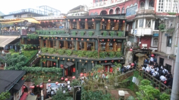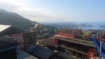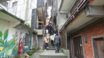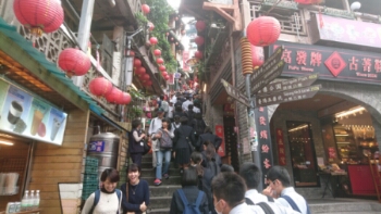 九フン観光へ出発。階段が多く、気温も高く、汗だくです。