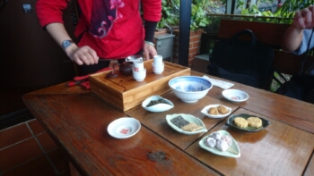 九フン観光も終わり、台北市内に戻り夕食です。しかし、現在まだ午後3時45分です。日本との時差は1時間です。(日本時間 午後4時45分)