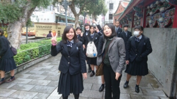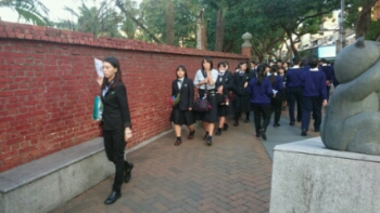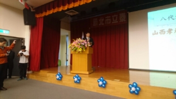 新北市立泰山高級中学校の校長先生、高校生から歓迎を受けました。