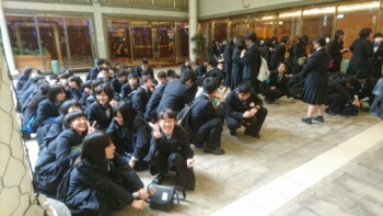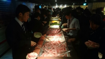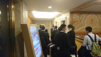 おはようございます。修学旅行2日目が始まりました。生徒たちは元気良く朝食会場に集合しました。
