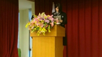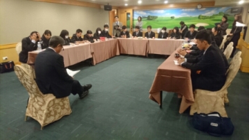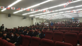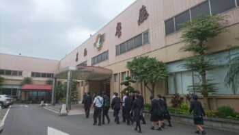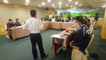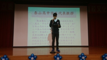新北市立泰山高級中学校の校長先生から歓迎のあいさつがあり、修学旅行の団長から昨年に引き続き交流させていただくことや、熊本地震の時に直ぐにお見舞いのメールをいただいたことのお礼のあいさつがありました。