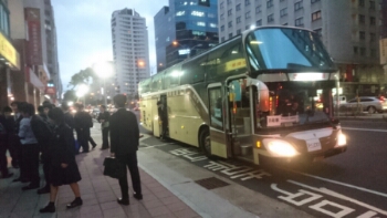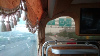 士林夜市の自由散策も終わり、ホテルに帰っている車内です。