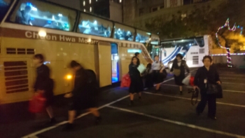 台北市内観光へ出発します。龍山寺などを観光後、班別自由行動です。