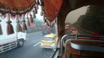 台北市へ向けて高速道路を走行中です。台北市に近づくに連れて渋滞しています。