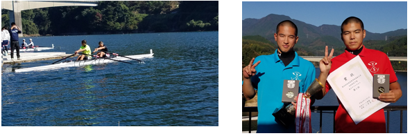 男子ダブルスカルに藤原君(2年)・上村君(2年)がエントリーし、予選・準決勝・決勝ともに1着で勝ち上がり見事優勝することができました。この大会でのダブルスカルでは、男女通じて初優勝となりました。今までの先輩たちの悔しさも背負って、気持ちの入った良いレースを見せてくれました。来年3月に静岡県で行われる、全国高等学校選抜競漕大会の出場権も獲得し、九州地区の代表として優勝目指してこれからの練習に励みたいと思います。ご声援頂きありがとうございました。