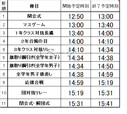 本日の体育大会は午後12時50分から短縮プログラムで実施いたします。