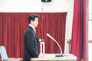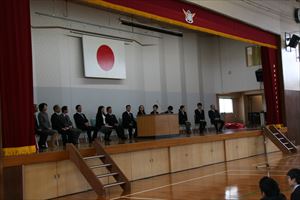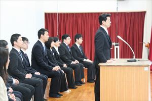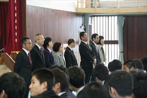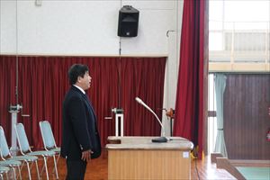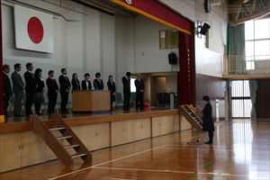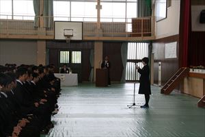 転・退任される先生方 別れの挨拶(松山校長先生) 生徒会長挨拶