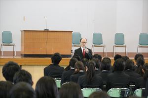 校長挨拶では、八代清流高校生の挨拶の素晴らしさについて話され、人を認めること、互いを尊重し受け入れ、相手の話を聞くことの大切さを話されました。