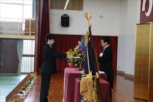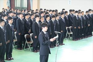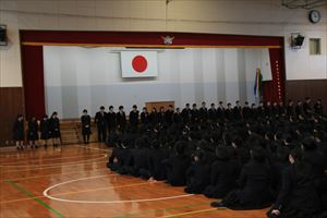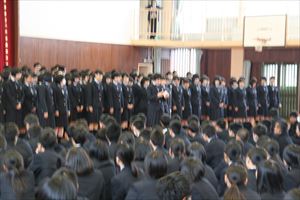 校長先生の式辞では、八代清流高等学校の三綱領である「自立」「進取」「錬磨」の精神を大切に日々、努力をしてほしいと話されました。そして、一人一人の総和の力が大きな力となり八代清流高等学校を支えることに繋がり、そこで身に付けることができた経験が自分自身を支える大事な糧となることも話されました。