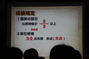 4月9日(木)午前中に1年生はラーニングルームでオリエンテーションがありました。1限目は1学年団の先生方の自己紹介があり、その後学年主任の吉本先生から講話がありました。講話の中で「雨だれ石を穿つ」という言葉の意味を説明され、日々の努力と毎日の積み重ねが重要であり、この頑張りが将来の自分の基礎基盤を作っていくと話されました。吉本先生の大好きなこの言葉が平成27年度4期生の1学年のスローガンになりました。2限目は生徒指導主事から「生徒必携」を用いた説明があり、高校生に必要な素直さ、明るさ、真面目さについて話をされました。3限目は、教務主任から成績のことについて、進路指導主事から進路実現の目標について話がありました。その後、保健室の使用方法についての説明が保健部の先生からありました。