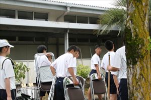 テント内への椅子の搬入 交通委員の準備 トラックへのライン作り