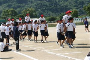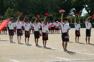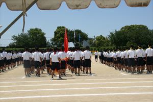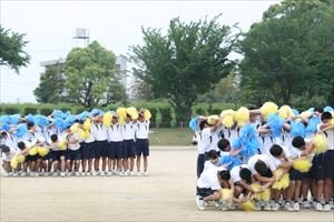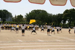 午後からは、開閉会式の練習を行いました。赤団、黄団、青団、白団、緑団それぞれが、自分たちの特徴を表現した楽しい入場行進を見せてくれました。各団の団長を中心によくまとまっているように感じました。
