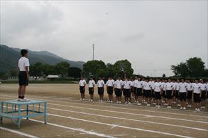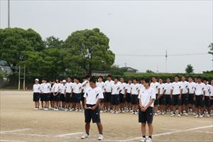体育大会の準備が終わってからは、全学年で取り組む、マスゲームの練習を行いました。2年生のダンス、1年生の集団行動、3年女子のダンス、最後に3年生男子の集団行動を行いました。どの学年も大変素晴らしく、本番の体育大会が楽しみになりました。