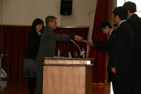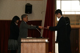 表彰後は、冬休みの過ごし方や今年の反省について教務主任、進路指導主事、生徒指導主事から、学習面の反省や結果を真摯に受け止め、自分の可能性を信じ、目標に向けて頑張ることの大切さや、事故や事件に合わないように気を付け、日ごろからお世話になっている家族へ感謝の気持ちを忘れないことなどについて話がありました。生徒は真剣に話に耳を傾け聞いていました。