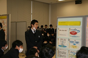 午後の部は、ステージ発表でした。代表に選ばれた2年生7人が、プレゼンテーションソフトを活用し発表を行いました。発表時間7分以上10分未満という限られた時間の中でしたが、皆、最高の発表を見せてくれました。発表後、審査員(大学の先生方)からでた質疑に対しての応答も素晴らしく、生徒の成長した姿が見られ頼もしく思えました。