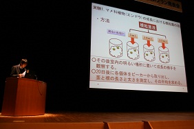 発表は午前の部と午後の部に分けて行われました。午前の部は、ポスターセッションで、24の研究テーマがありました。興味深いテーマが多く、とてもよく研究されていました。ポスターセッションでのプレゼンテーションは、原稿を見ずに説明するゼミや、研究テーマの内容を実演するなどの創意工夫もみられました。