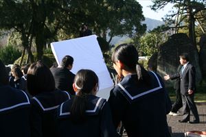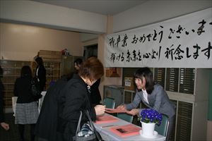八代清流高等学校第1期生 卒業証書授与式 受付風景 式前の思いでビデオ上映