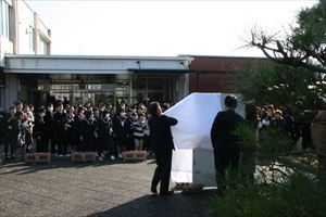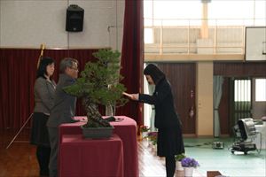 卒業記念品贈呈 卒業記念品贈呈1(優勝旗) 卒業記念品贈呈2(大型ヒーター)