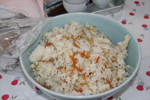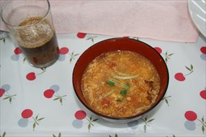 献立は、東陽町の特産物である生姜を使用した、生姜ごはん、トマトスープ、南瓜の饅頭とメインに生姜ドレッシングをかけて食べる豚の冷しゃぶでした。どれも大変美味しく、生姜が苦手な人にでも食べることができる工夫がありました。