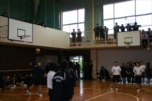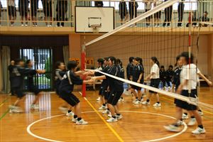 3月19日(木)、今日は後期クラスマッチです。とても楽しみにしていたのですが、外は雨が降っていました。予定では、男子はサッカー、女子は、ソフトボールでしたが、今日は、体育館で男女ともに9人制のバレーボールを行いました。