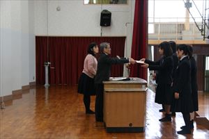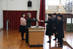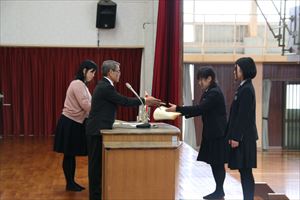 卒業証書授与 代表 上原(3年) 校長式辞 県教育長挨拶