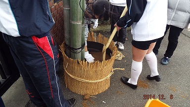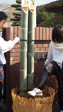| 12月6日、土曜日に生徒会と部活動生が協力し、門松を作りました。竹を切ったり、土を運びいれたりと大変でしたが、 とても良いものが完成しました。これで、また八代清流高校は素敵な一年を迎えることができそうです。 | | ||