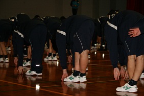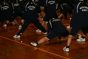 交通指導の職員打ち合わせ 入念な準備運動1 入念な準備運動2
