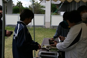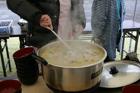 マラソン後には、保護者の方々が準備してくださった、豚汁を食べ冷えた体を温めることができました。お母様方が作られた豚汁は大変美味しかったです。