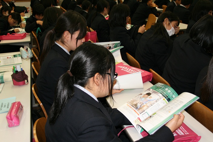 1月15日(木)、今日は7限目のLHRの時間を使い、修学旅行の事前指導を本校のラーニングルームを利用して行いました。初めに、修学旅行団の団長を務める山西教頭から話がありました。一生の思い出に残る楽しい修学旅行にするために必要なこと、①学ぶことの素晴らしさ、②時間を守ることの大切さ、③集団行動での規律を大事にすることについて話をされました。次に1学年主任の山崎先生から話がありました。修学旅行のしおりに沿った日程の確認をされ、スキーや宿泊施設、自主行動での注意がありました。事故や事件に巻き込まれないように強く指導をされました。最後に、古閑先生から、元気で楽しい修学旅行にするために注意することをまとめた、保健室からのプリントについての説明がありました。