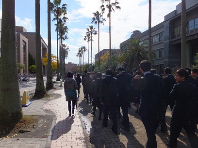 12月4日木曜日、1学年(生徒169名)、2学年(56名)、職員14名で大学訪問に行ってきました。目的は、他県の大学を訪問することにより、進学先選択の幅を広げるとともに、施設やキャンパスの見学を通じて進路意識の高揚を図るためです。
