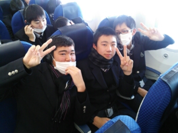 羽田空港を後にバス5台で栃木に向けて移動中です。また、車内でお弁当を食べています。