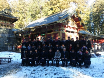 正面に見える男体山2486mの麓、日光東照宮に到着しました。