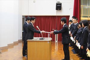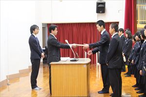 表彰後は、冬休みの過ごし方や今年の反省について教務主任、進路指導主事、生徒指導主事から、進路目標設定の大事さや生活態度の見直しについて話がありました。