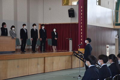 4月8日(金)、本校体育館で新任式がありました。3月に16名の先生方とお別れしましましたが、本日、新しく15名の先生方をお迎えすることができました。新任者代表挨拶では坂井誠校長先生よりご挨拶をいただきました。生徒代表として生徒会長が歓迎の言葉を述べました。