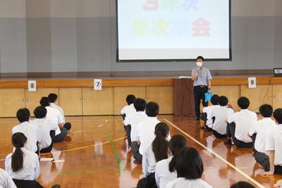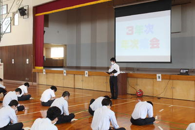 本日3年次は午前登校の日で、3限目に年次集会を行いました。