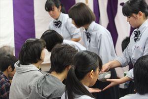 | 保健委員会の発表 スマホと健康 | 2年3組 劇:白雪王子 | 箏曲部の発表 「一音入魂!!」 |