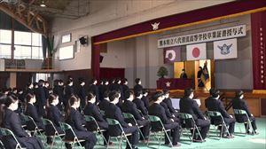 | 卒業証書授与 代表:植田さん(3年) | 校長式辞 | 送辞:在校生代表 上村くん(2年) |