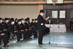 | 答辞:卒業生代表 射場くん(3年) | 卒業生退場 |