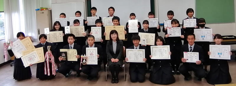 校長先生のお話に「高校生活は3年間で1050日くらい。その中で何に取り組みどう過ごすかが大切です。」とありました。それぞれの入賞は「高校生活における取り組みが実を結んだ」と自信を持って言える事だと思います。おめでとうございました。