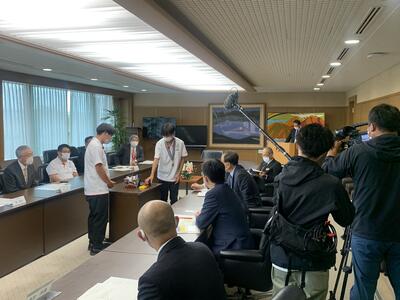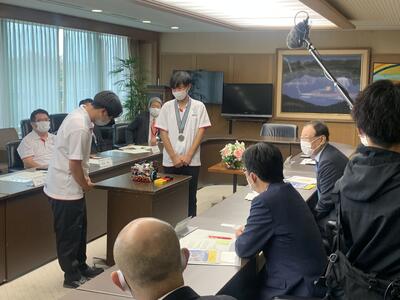 2年の上塚くんが2022WROドイツ国際大会に向けての表敬訪問に県庁へ行ってきました!