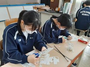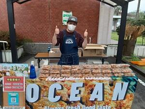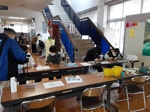 うまくいくかどうか緊張しながら当日を迎えました。イベントは、①食用イグサを用いたオリジナルのパンの開発・製作 → 販売、②晩白柚の練り香水の開発・製作→配布、③八代市の魅力PRブース/日奈久町の魅力PRブース、④来場者参加体験型ブース(ちびっこ向け・小中学生向け)、⑤猫の譲渡会のリモート見学ブース、⑥まちなかお掃除隊クリーンプロジェクト、⑦お絵描きブースのイベントを開催しました。連携企画である譲渡会では、八代ニャンズ助け隊のご協力のもと実施しました。また、会場を盛り上げるために、学校近隣の商店からの出店いただいたり、フードトラックなどにもご参加いただきました。