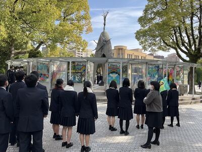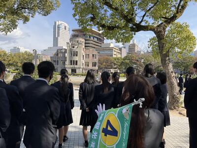 その後バスで移動し、広島平和記念公園の見学、写真撮影、資料館の見学を行いました。