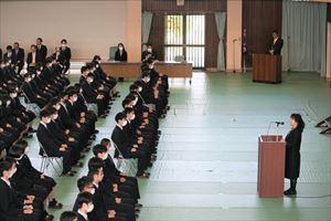 引き続き行われた始業式では、校長先生が、出会いを大切にすることと、何をどのように学ぶのかということについてお話をされました。始業式後は、新しい年度に関わる校務運営委員の先生方の紹介と、各年次の担任、副担任の紹介がありました。
