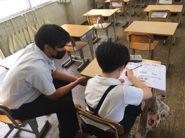 生徒たちは、お兄さん、お姉さんとして、小学生に分からない問題を教えるなどして、学習のサポート役を担いました。生徒たちの頼もしい姿を見ることができました。
