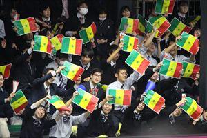 女子ハンドボール世界選手権大会の観戦風景5 セネガルチームの応援をみんなで頑張りました。 |